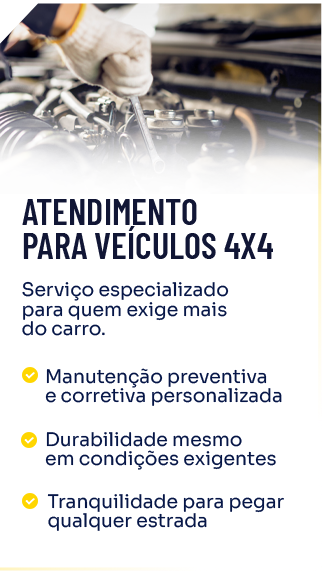 Sim! Somos especializados em veículos nacionais, importados e 4×4. Nossa equipe é treinada para lidar com tecnologia embarcada, eletrônica automotiva e sistemas complexos de tração, garantindo o cuidado que seu carro merece.